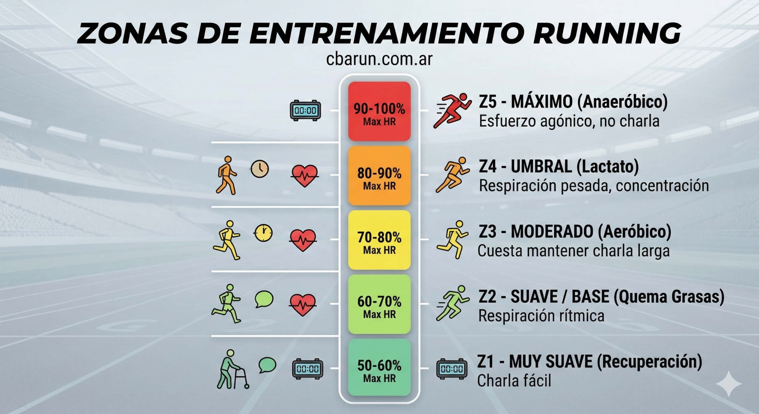 Consejo: Si tu entrenamiento dice «6 km suaves» y te toca subir una cuesta en el Parque Sarmiento o en las Sierras, no te obsesiones con el reloj. Aprendé a correr por zonas de frecuencia cardíaca o sensaciones.